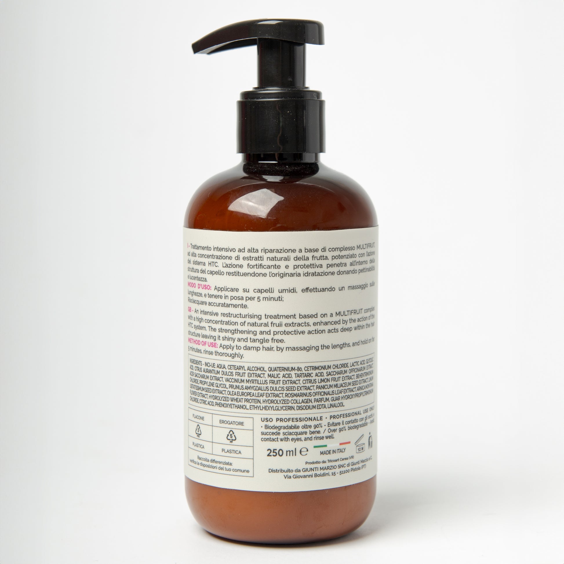 IT - Trattamento intensivo ad alta riparazione a base di complesso MULTIFRUIT, ad alta concentrazione di estratti naturali della frutta, potenziato con l’azione del sistema HTC. L’azione fortificante e protettiva penetra all’interno della struttura del capello restituendone l’originaria idratazione donando pettinabilità e lucentezza.
